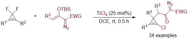 图3. TiCl4催化/介导偕二氟环丙烯与重氮烯醇硅醚的反应