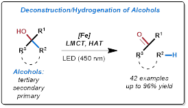 (27) Wei Liu,‡ Qiang Wu,‡ Miao Wang, Yahao Huang, Peng Hu*, Iron Catalyzed C-C Single Bond Cleavage of Alcohols, Org. Lett. 2021, 23, 8413–8418. (Featured by Synfacts, 2022, 18, 55; Org. Chem. Highlights, 2022, September 12. Preprint: 10.33774/chemrxiv-2021-85brt-v2)