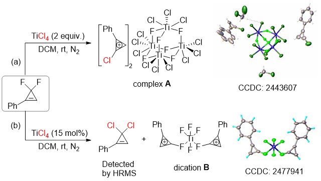 图2. 无外加亲核试剂时TiCl4与偕二氟环丙烯的反应